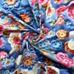 Premium Blue Flowers Cotton King Fitted (Elastic) 7D Digital 1 Bedsheet with 2 Pillow Covers