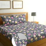 Premium Blue Tulip Cotton King Fitted (Elastic) 7D Digital 1 Bedsheet with 2 Pillow Covers
