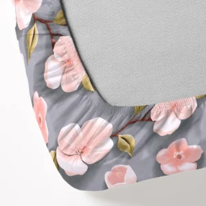 Premium Pink Flower Cotton King Fitted (Elastic) 7D Digital 1 Bedsheet with 2 Pillow Covers
