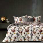 Premium Brown Lotus Cotton King Fitted (Elastic) 7D Digital 1 Bedsheet with 2 Pillow Covers