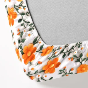 Premium Red Yellow Flower Cotton King Fitted (Elastic) 7D Digital 1 Bedsheet with 2 Pillow Covers