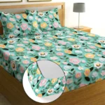 Sky Rose Cotton King Fitted (Elastic) 7D Digital 1 Bedsheet with 2 Pillow Covers